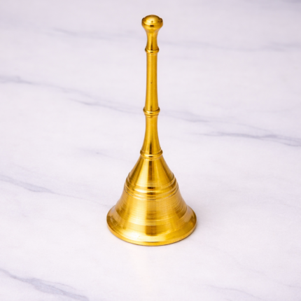 A premium, hand-cast brass bell designed to produce a clear, long-lasting "Om" sound. This sacred instrument is used to alert the deities of your arrival and to sharpen focus by clearing the mind of distracting thoughts.
