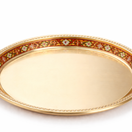 An elegantly handcrafted, high-quality brass plate (Pital) designed to hold all your ritual essentials. Its golden luster reflects the divine light, making it a centerpiece for daily prayers or grand festive ceremonies.