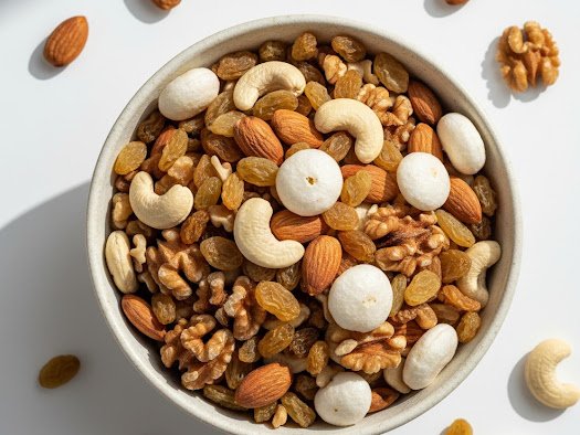A premium mix of five assorted dry fruits, perfect for healthy snacking, pooja offerings, and festive use.